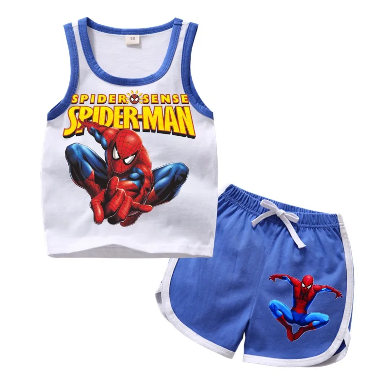 Новинка 2019 года, летний комплект одежды для мальчиков и девочек с рисунком Человека-паука, Детский жилет с рисунком, шорты, повседневный ком...