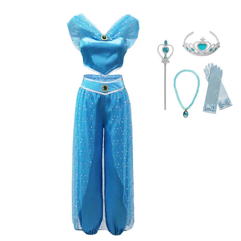 VOGUEON/аравийская принцесса, платье цвета жасмин, фэнтези, детский топ с блёстками и штаны, 2 упаковки, Детский костюм для танцев