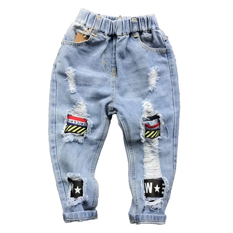 Модные рваные джинсы для мальчиков возрастом от 1 года до 6 лет летние детские брюки с рисунками джинсы с дырками для маленьких девочек весенне-осенние детские джинсовые штаны, одежда