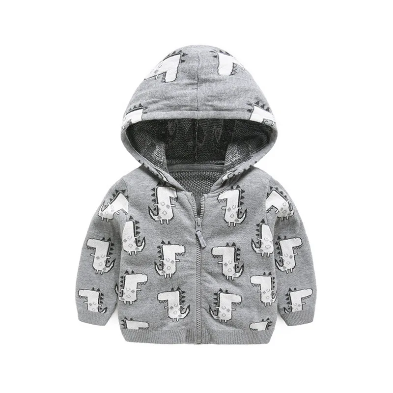 Верхняя одежда для малышей; пальто на молнии; хлопковая куртка унисекс для новорожденных; сезон весна-осень; толстовки с капюшоном с динозав...