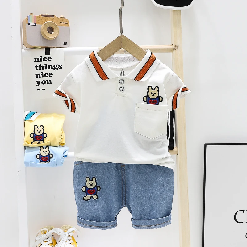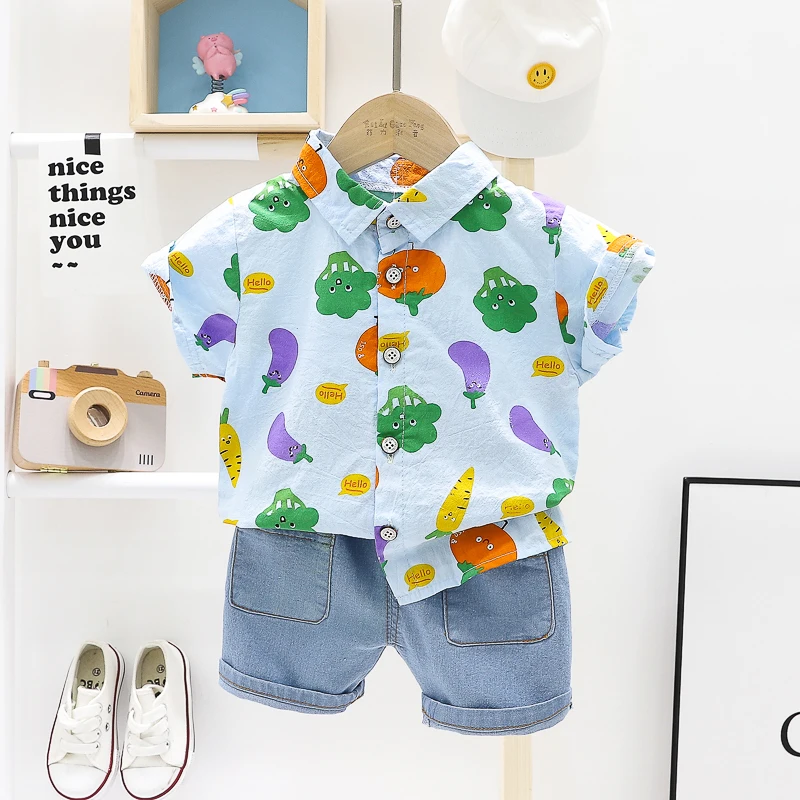 HYLKIDHUOSE/комплекты летней одежды для маленьких мальчиков 2020; Рубашка с короткими рукавами для младенцев; Джинсовые шорты; Детская повседневная одежда для отдыха