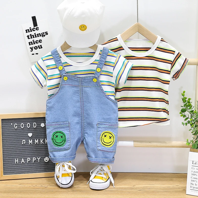 HYLKIDHUOSE/комплекты одежды для маленьких мальчиков летние шорты для малышей Полосатая Футболка с рукавами джинсовые шорты на лямках детская одежда