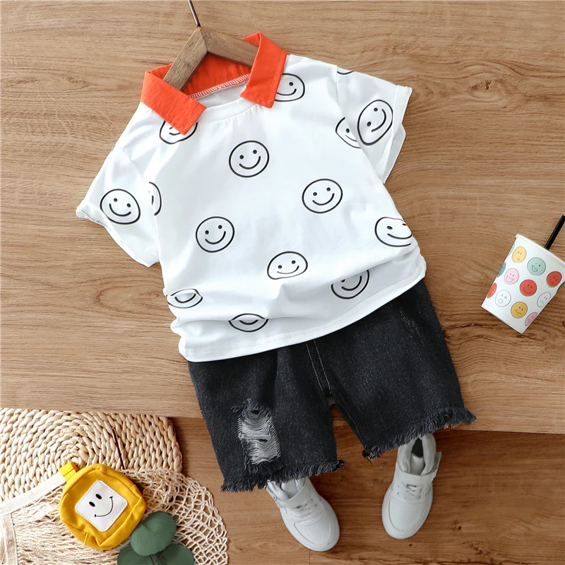 HYLKIDHUOSE/летние комплекты одежды для маленьких мальчиков, футболка с короткими рукавами и рисунком джинсовые шорты одежда для отдыха для малышей
