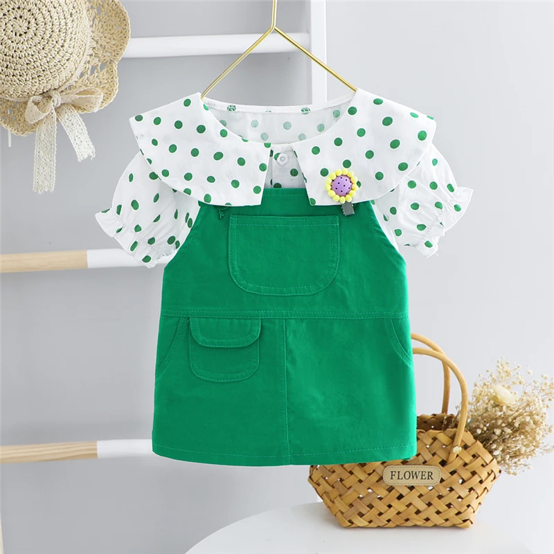 HYLKIDHUOSE/летние комплекты одежды для маленьких девочек 2020; Платье-рубашка в горошек с короткими рукавами; Одежда для малышей; Детская повседневная одежда