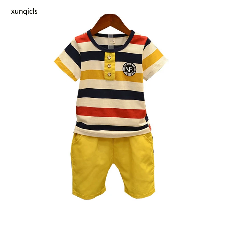 Новинка; Комплект летней одежды для мальчиков; Детская футболка + шорты; Комплект одежды из 2 предметов для мальчиков; Хлопковая детская одежда в полоску с короткими рукавами для мальчиков