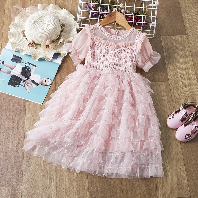 Праздничные платья для девочек, кружевная вышивка, одежда принцессы для маленьких девочек летняя повседневная одежда для детей юбка-пачка, одежда для девочек от 3 до 8 лет
