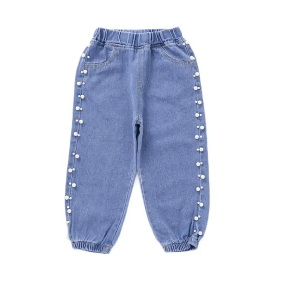 Детская одежда джинсы для девочек весенние джинсы для малышей повседневные брюки с жемчужинами детские штаны для девочек ковбойские брюки осень 2020