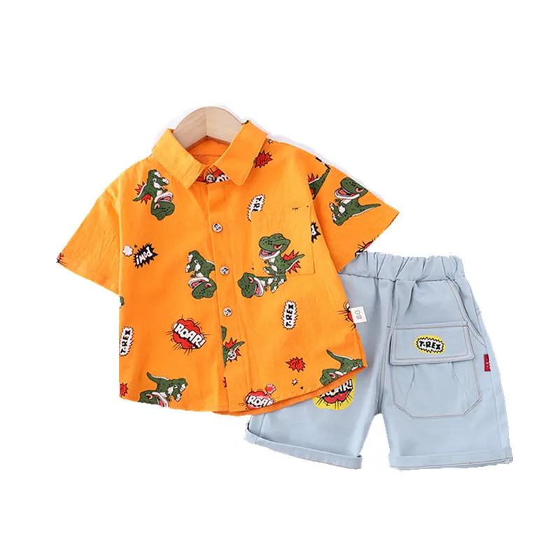 Хлопковые летние детские мягкие шорты, костюм, футболка Милая Одежда для мальчиков и девочек с рисунком динозавра дешевая одежда для детей