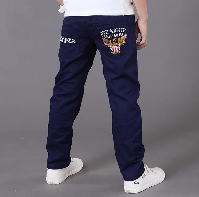 2018 дети мальчик джинсы вышивка весна-осень брюки школьный мальчик От 3 до 12 лет Повседневная Хлопок Письмо Штаны одежда Штаны