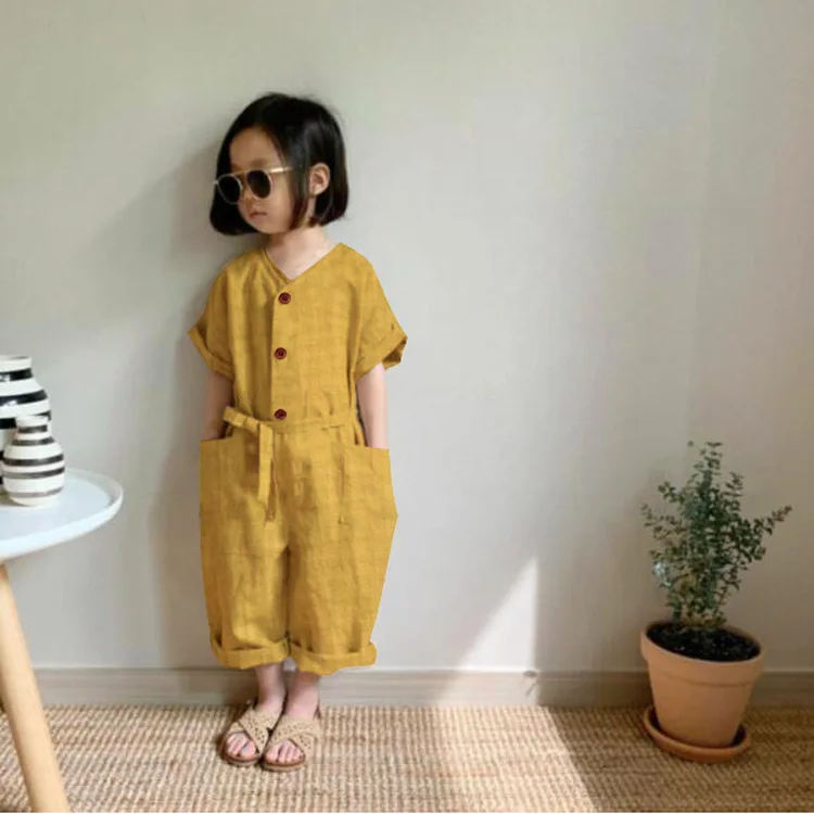 3364 г. Весенне-летняя детская цельнокроеная повседневная одежда однотонные комбинезоны с рисунком комаров Хлопковые Штаны для маленьких девочек