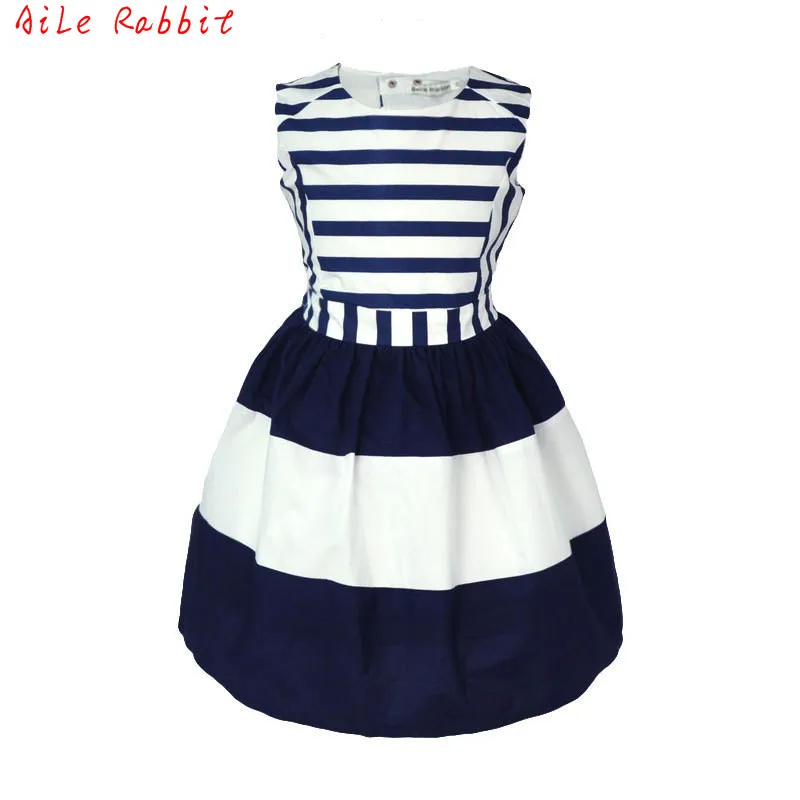 100% хлопок Фирменное платье для девочек в стиле «милитари» 2018 летнее платье открытое сзади платье в полоску темно-синего цвета
