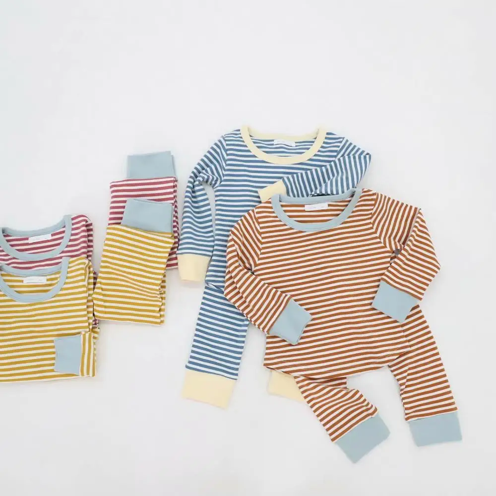 Детский пижамный комплект для мальчиков и девочек, полосатые пижамы для малышей, детский топ и штаны, одежда, одежда для сна, одежда для сна