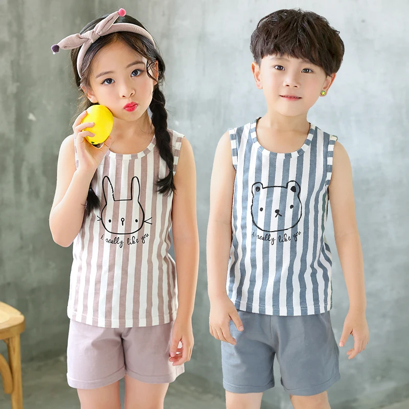 Детская одежда летние детские пижамные комплекты одежда для сна с героями мультфильмов для маленьких девочек и мальчиков хлопковый жилет + ...