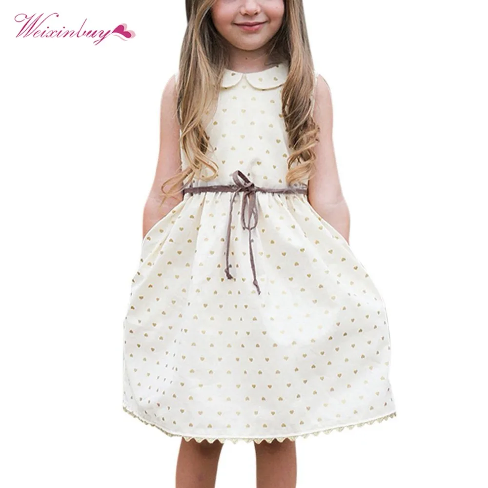 WEIXINBUY Очаровательное Летнее белое платье в горошек для маленьких девочек вечерние платья принцессы без рукавов От 3 до 7 лет