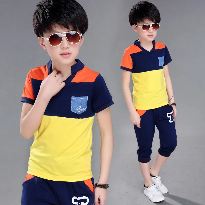 Футболка с короткими рукавами для больших мальчиков + короткие штаны, спортивные комплекты из 2 предметов летняя детская одежда новые летни...