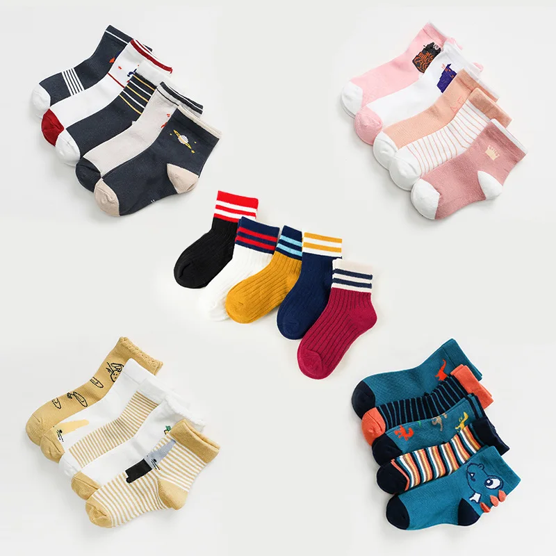 10 шт./лот = 5 пар Носки для маленьких мальчиков для девочек мягкие хлопковые носки унисекс с рисунком Дети Детские носки для От 1 до 12 лет дышащ...