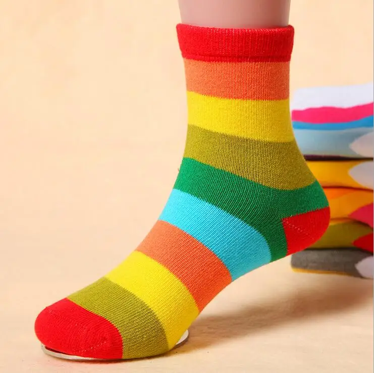 5 пара/лот хлопок демисезонный маленьких обувь для девочек детские носки теплые мальчиков в полоску Радуга Красочные Дети Рожде