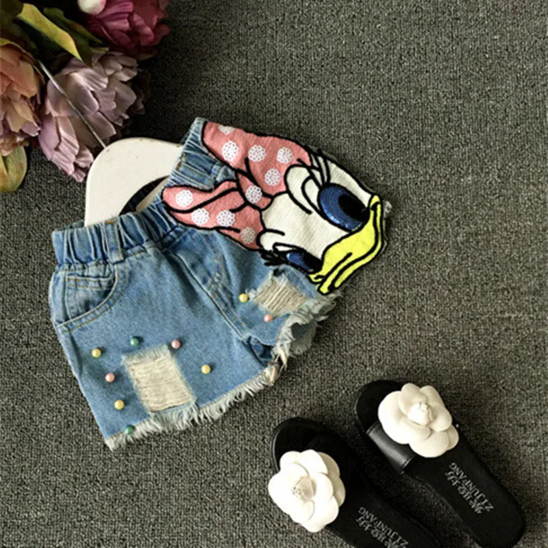 2018 Укороченные джинсы для маленьких девочек дизайн утка Лето Детские шорты детские джинсовые шорты для штаны для девочек Одежда для малень...