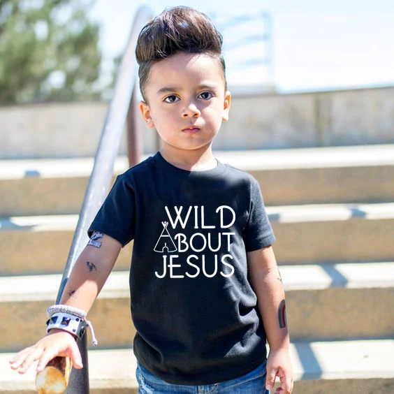 Топы с надписью «Wild but Jesus» для маленьких девочек, летняя футболка детская футболка с короткими рукавами летняя одежда для маленьких девочек...