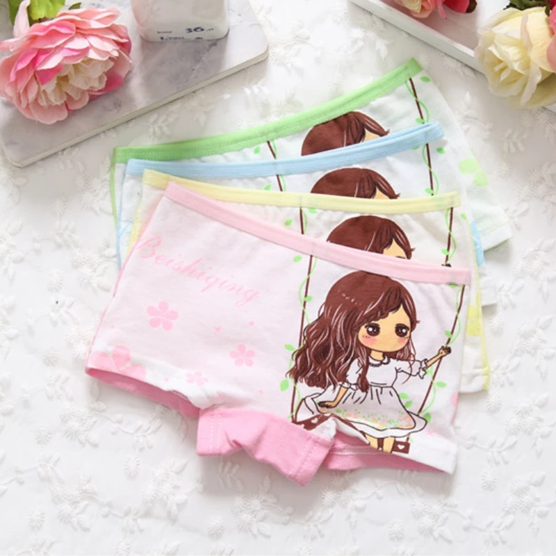 4 шт., хлопковые трусики для девочек, удобное мягкое нижнее белье с рисунком для От 2 до 9 лет, детские трусы, детская одежда