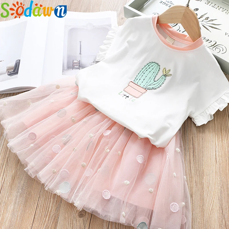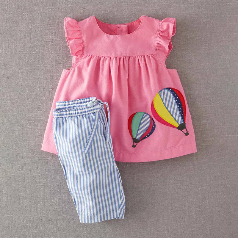 Little Maven/новый летний хлопковый тканый Комплект футболок розового цвета с аппликацией и круглым вырезом для девочек 1-6 лет