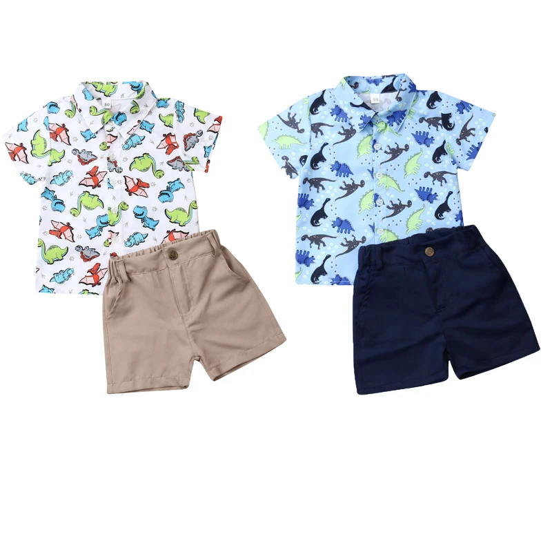 Комплект одежды для маленьких мальчиков; костюм с динозавром; летняя рубашка с короткими рукавами в джентльменском стиле; топы и шорты; комплект одежды из 2 предметов