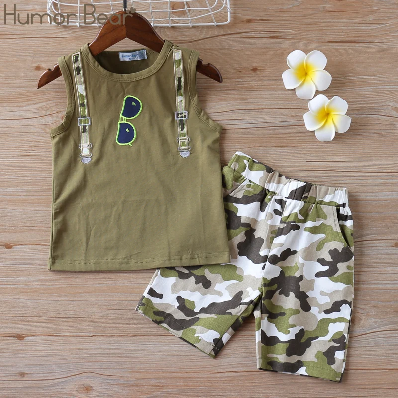 Humor Bear/летние детские комплекты одежды для маленьких мальчиков, футболка без рукавов + камуфляжные шорты, детские костюмы из 2 предметов, детская одежда, 2020