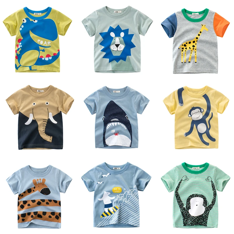 Детская летняя футболка с короткими рукавами, повседневные топы, одежда для маленьких мальчиков, футболки с рисунками животных, Детская Хло...