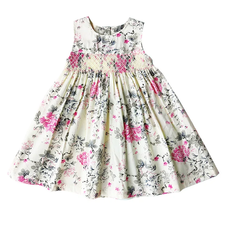 Новинка; летняя детская одежда с цветочным принтом; без рукавов; английский стиль; ручная работа; с поясом; с бантом; для девочек 3-7 лет; плать...