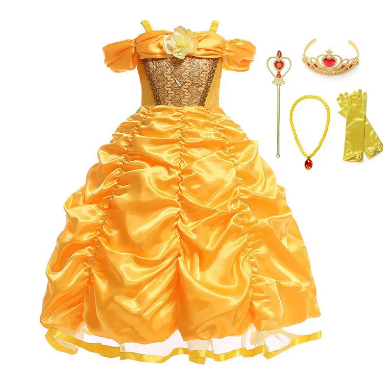 MUABABY Belle Косплэй костюм девушки Красота и чудовище платье принцессы до детей Shoulderless многослойное бальное платье для Хэллоуина