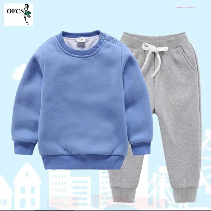 Осень 2019 года, новый корейский Детский костюм однотонная куртка для маленьких мальчиков и девочек, пальто + детские свободные штаны-шаровар...