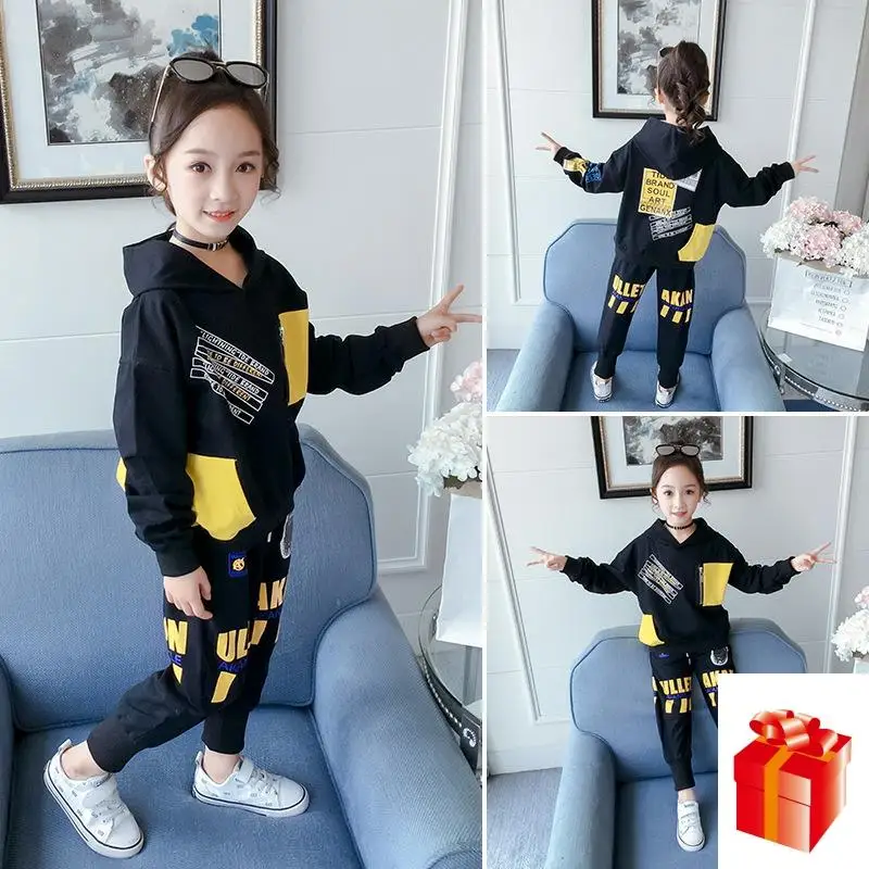 Детский комплект для девочек на весну-осень, 2020 новейший спортивный комплект в стиле хип-хоп для девочек, черный Рождественский комплект из ...