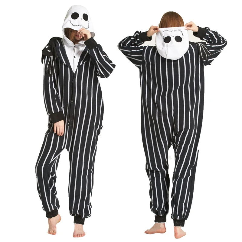Флисовая теплая Пижама для взрослых, набор кигуруми Джек Скеллингтон, Комбинезоны для женщин и мужчин, костюм для косплея на Хэллоуин, мульт...