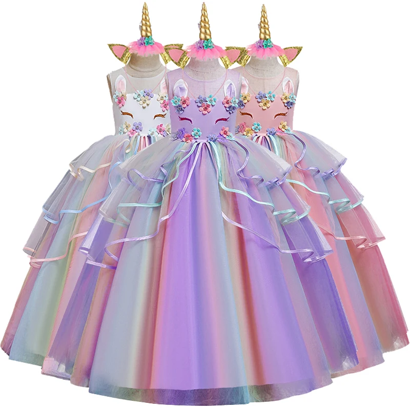 Подарок, высококачественное детское платье на день рождения, вечеринку, свадьбу длинное платье с вышитой аппликацией в виде единорога для От 4 до 14 лет девочек