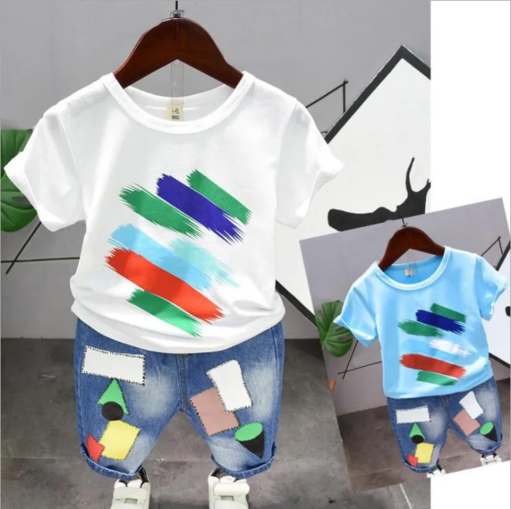 2019 новые летние комплекты одежды повседневная хлопковая детская одежда для мальчиков футболка + шорты для маленьких мальчиков комплекты од...