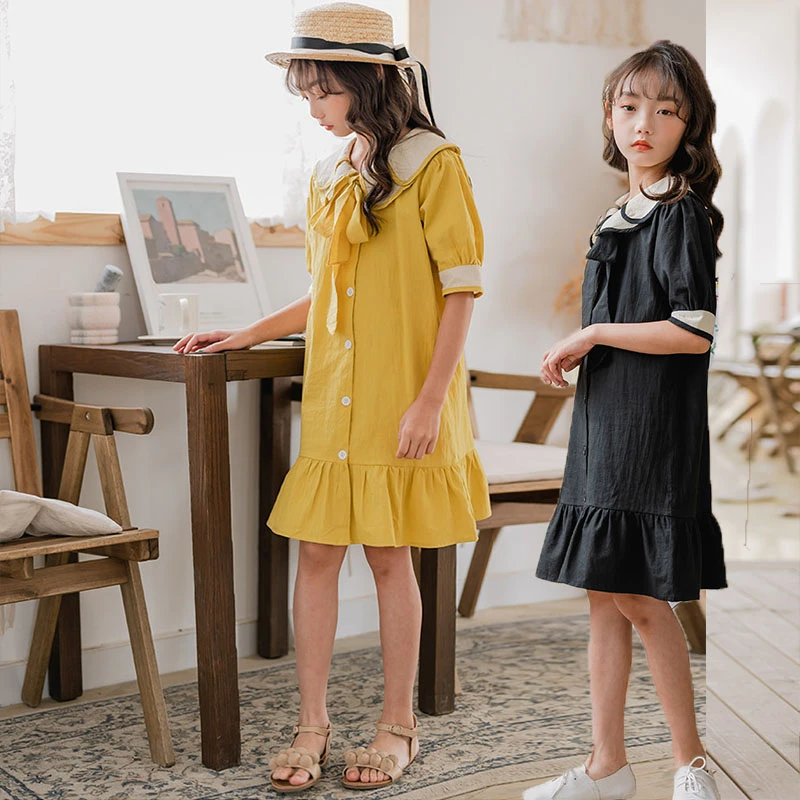 Модная летняя одежда для девочек; Детское платье; Новинка 2020 года; Платья из 100% хлопка для крупных девочек; Детское школьное платье принцессы с оборками