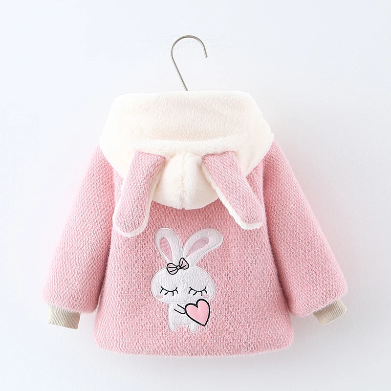 Милые пальто с искусственным мехом для маленьких девочек; куртки; зимняя теплая верхняя одежда с капюшоном и рисунком кролика; топы для новорожденных; одежда
