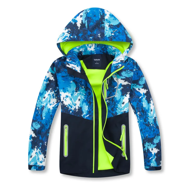 UmkaUmka куртка для мальчика весна осень ветровка для мальчика непродуваемая и водоотталкивающая дышащая флис подкладка мягкая оболочка soft shell теплая длинный мех и рефлекторы экспорт Европа