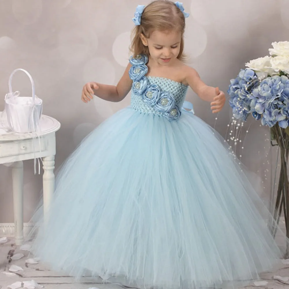 Шикарное голубое платье для девочек с цветочным рисунком, Повседневное платье-пачка для маленьких девочек, платье на день рождения, свадьбу...