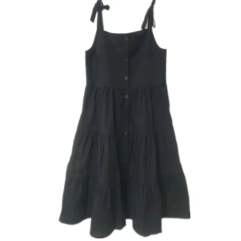 4 to 16 years kids & teenager girls summer black pink button front flare midi dress children cotton casual sleeveless vest dress