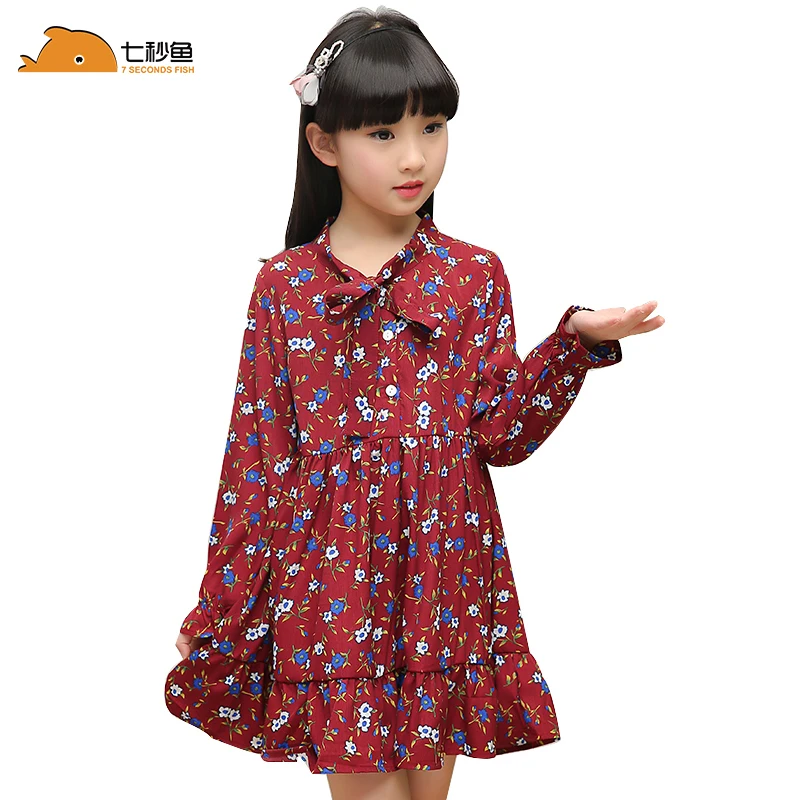 Детские платья для девочек, весна 2019, Хлопковое платье с длинными рукавами и цветочным принтом для девочек 3, 5, 7, 8, 10, 12 лет, осенний костюм для...