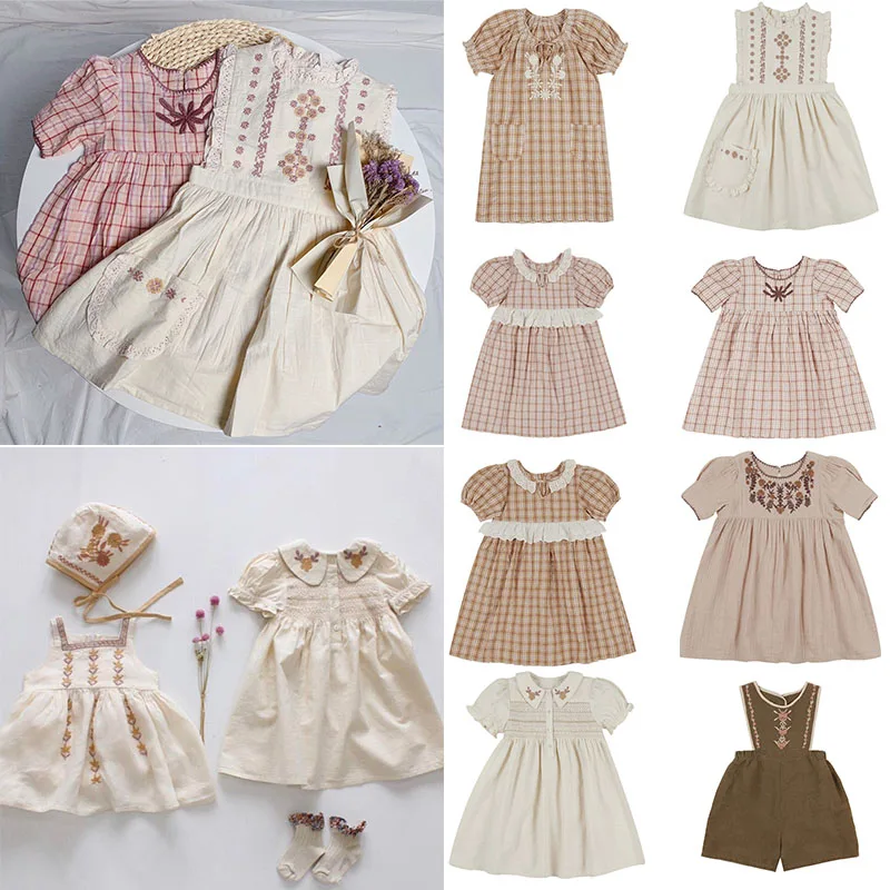 EnkeliBB APO/Брендовое детское летнее Хлопковое платье для девочек красивое винтажное детское платье-пачка с короткими рукавами и вышивкой для малышей