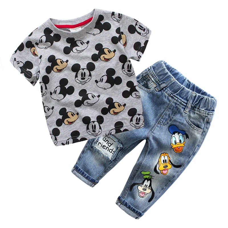 Комплект детской одежды для мальчиков, футболка, Летний джинсовый костюм, детский спортивный костюм, детская одежда с рисунком Микки Мауса ...