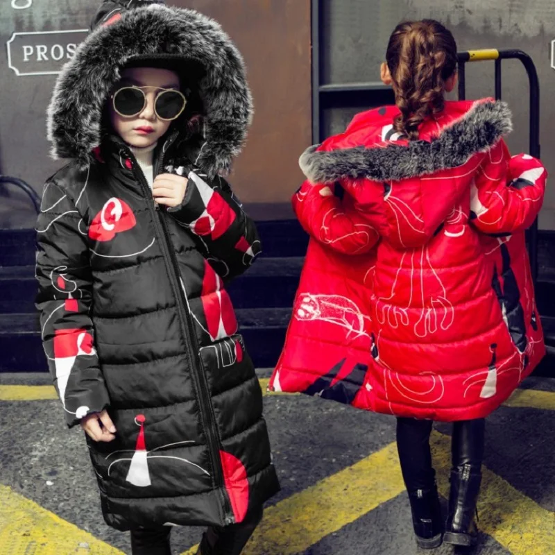 2019 г. Камуфляжные парки с граффити, куртка для мальчиков, брендовые зимние куртки с капюшоном для подростков, плотное длинное пальто для мал...