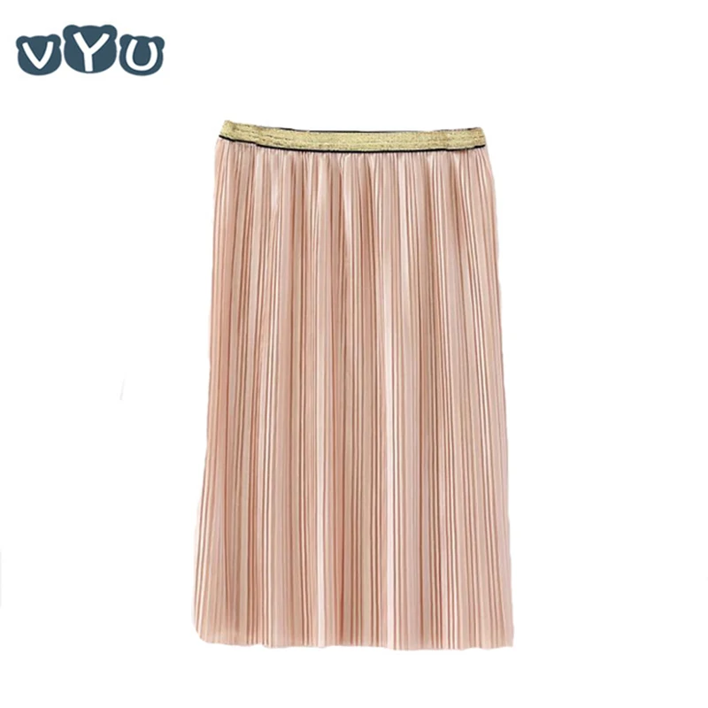 2018 бархатная плиссированная юбка, плиссированная гладкая длинная юбка, летняя и Зимняя Новая повседневная свободная детская юбка с высокой...