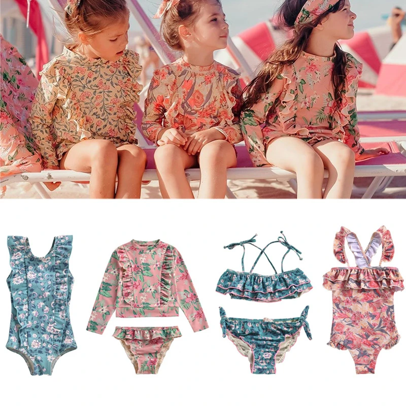 2020 L & M бренд 2020 Новый сезон: весна–лето цельнокроеный Детский костюм комплекты для купания детей Цветочный принт пляжное Бикини модные детские купальники