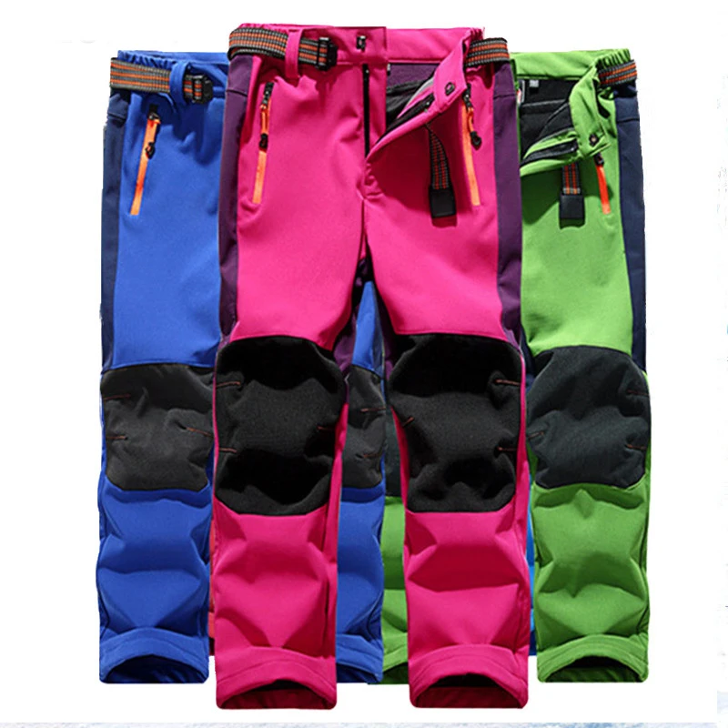 Зимние штаны для мальчиков и девочек, теплые штаны, ветрозащитные непромокаемые спортивные штаны в стиле пэчворк, детские лыжные штаны, брю...