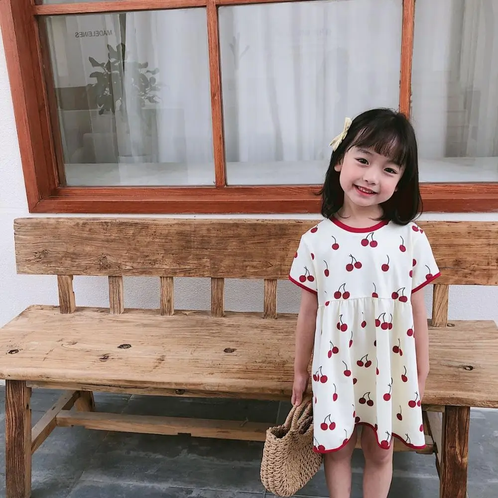 baby girl summer clothes Short sleeve cotton comfortable printed dress Cute cherry pattern round neck dress