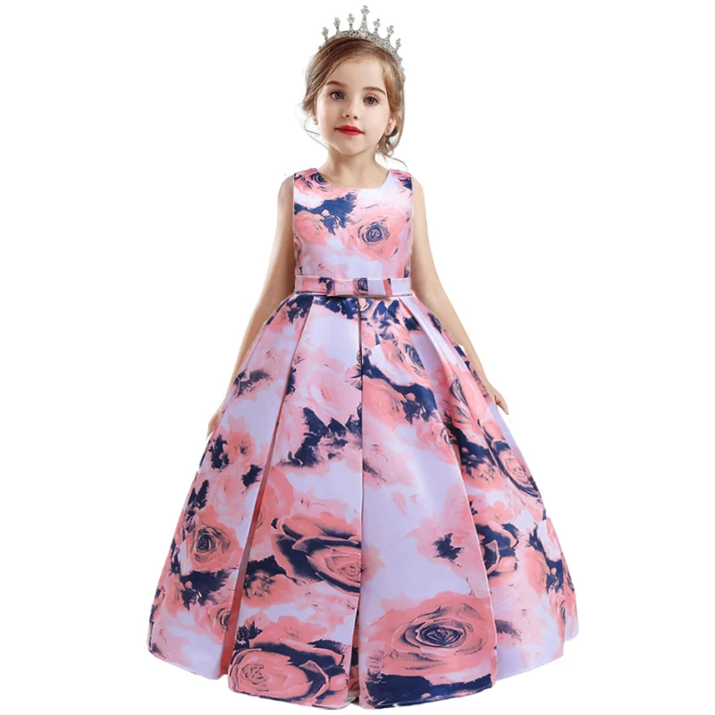 Костюм с цветочным рисунком платье-пачка с бантом и узором, длинное платье для девочек, платья принцесс, платья для дня рождения или сцениче...