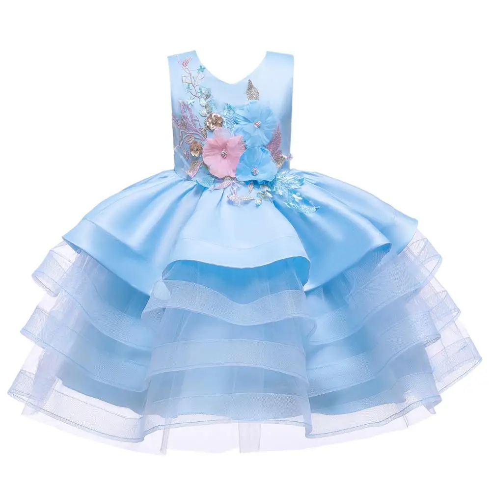 4 слоя платье с фатиновой юбкой для девочек с Винтаж Цветочный Топ Для летних вечеринок Свадебные специальных Occasi принцессы Детские платья ...